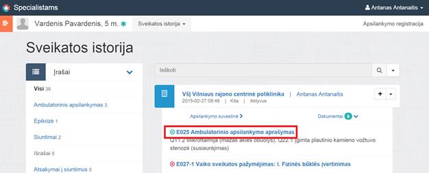 E025 Ambulatorinio apsilankymo aprašymas ir E003