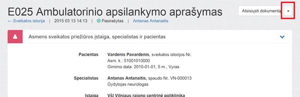 E027 Medicinos dokumentų išrašas / siuntimas dokumento