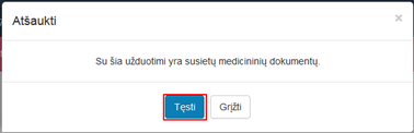 atšaukiama užduotis neturi susietų su užduotimi dokumentų, modaliniame lange