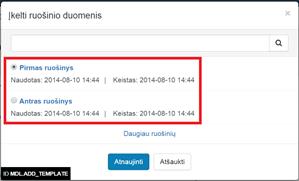 2.2.2.2. Pasirinkti ruošinį, kuris bus atnaujinamas. Sąrašas rodomas tuščias jeigu ankstesnių ruošinių nėra.