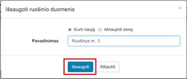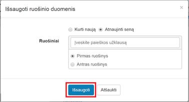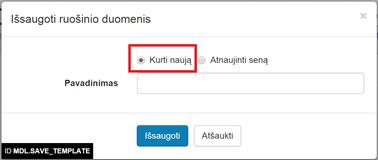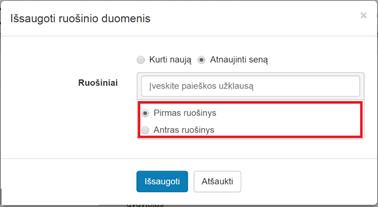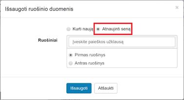 2.2. Pasirinkti, ar bus kuriamas naujas ruošinys (Kurti naują), ar pakeičiamas anksčiau išsaugotas (Atnaujinti seną) ruošinys:
