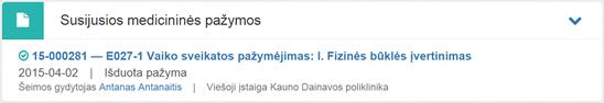 E025 bloke Susijusios medicininės pažymos pridedama pažyma su