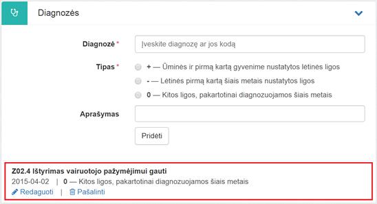 E025 bloko Diagnozės sąraše pridedama diagnozė su