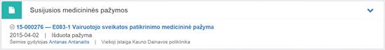E025 bloke Susijusios medicininės pažymos pridedama pažyma
