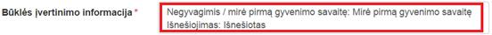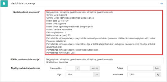 Dokumento laukas Būklės įvertinimo informacija užpildomas