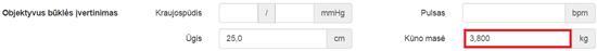Dokumento laukas Kūno masė užpildomas iš pažymos lauko Kūno