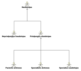 Galimi prisijungusių naudotojų tipai išvardyti žemiau: