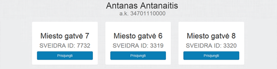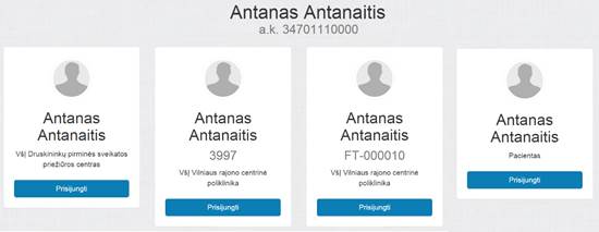 Po vieną Pacientas prisijungimų sritį savo pacientui, atstovui