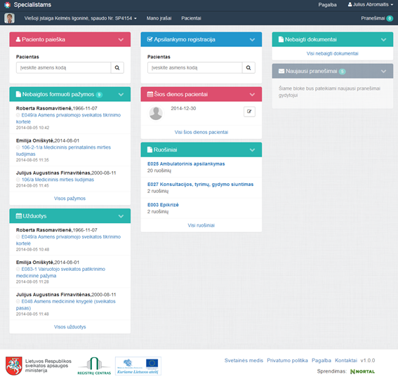 prisijungimą, naudotojas prijungiamas prie Pacientų portalo. Naudojimasis