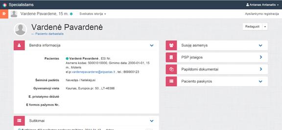 peržiūrą skaityti skyriuje 4.5 Paciento informacijos peržiūros puslapis)