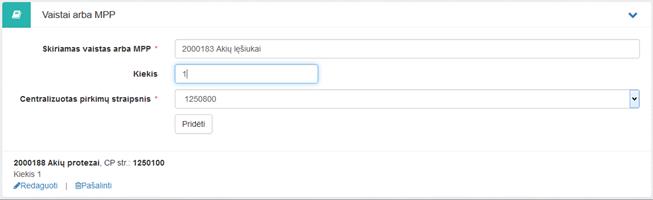 skaičius neribojamas. Pavyzdys, kai sąraše pridėta viena medicinos pagalbos priemonė,