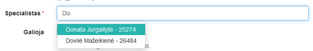 specialistą. Vedant specialisto vardą, pavardę arba spaudo nr. arba jų dalį,