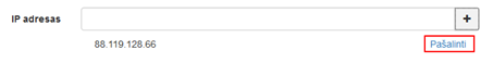 Pridėtas IP adresas matomas sąraše po įvedimo lauku. Leidžiama pridėti daugiau nei vieną IP adresą numerį. Paspaudus sąraše šalia IP adreso rodomą nuorodą Pašalinti įvestas IP adresas ištrinamas iš sąrašo. Nurodžius IP adresą pavaduojančiam arba įgaliotam specialistui bus leidžiama prisijungti tik iš tinklo nurodytu IP adresu.
