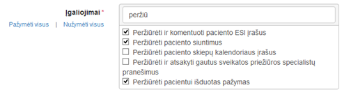 būtų filtruojamas, galima įvesti žodį ar žodžio dalį įgaliojimų bloko paieškos