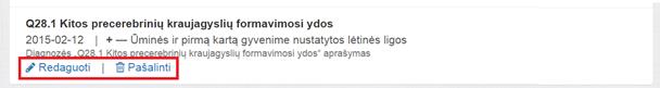 Kol esama tame pačiame lange, kuriame diagnozė buvo pridėta, ir be apribojimų galima redaguoti ir šalinti mygtukais atitinkamai Redaguoti ir Šalinti.