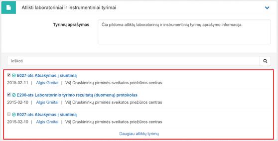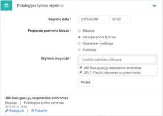 privaloma) pridėti patologijos tyrimo skyrimus. Skyrimas pridedamas tik kai