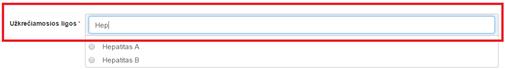 dokumento bloke Diagnozės. Jeigu diagnozės, pagal kurią planuojama