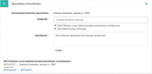 specialisto konsultaciją (‑as). Įrašas pridedamas užpildžius privalomus