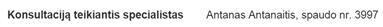 Konsultaciją teikiantis specialistas – duomenys apie