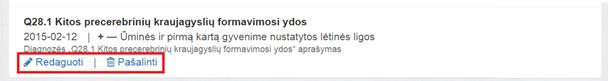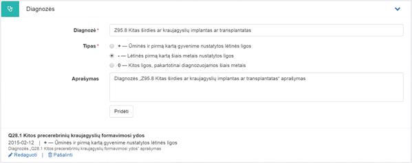 Kol esama tame pačiame lange, kuriame diagnozė buvo pridėta, ją be apribojimų galima redaguoti ir šalinti mygtukais atitinkamai Redaguoti ir Šalinti.