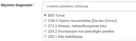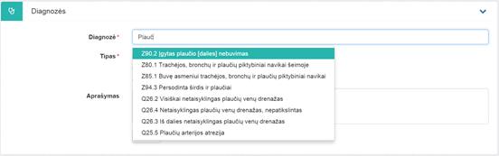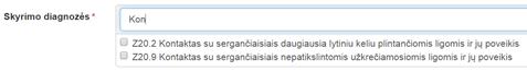 diagnozių sąraše, pavadinimas ir/arba jos kodas. Vedant diagnozės pavadinimą