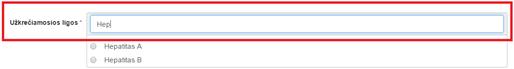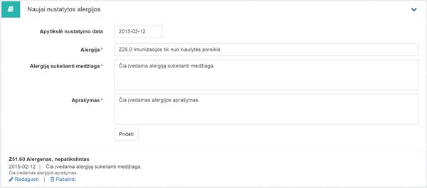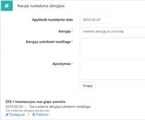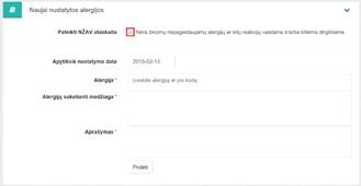 dirgikliams. Alergija pridedama, kai užpildžius privalomus laukus paspaudžiama