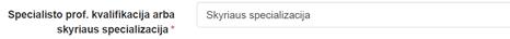 Specialisto prof. kvalifikacija arba skyriaus specializacija –