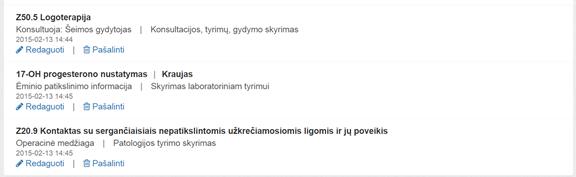 Diagnozės. Bloke pridedamos paciento diagnozės.