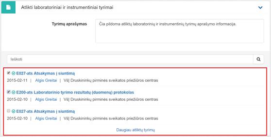 pagrindu bus kuriami medicininiai dokumentai: E027 - siuntimo