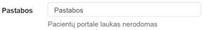 skyrybos ženklų simbolius. Įvestos pastabos pacientų portale nerodomos.