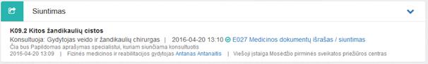 kuriamas tik pagal siuntimą, t.y., jei paciento ESI yra pasirašytas E027