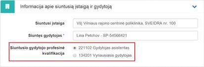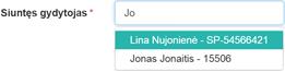 Siuntęs gydytojas – automatiškai užpildomas prisijungusio