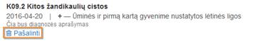 Kol esama tame pačiame lange, kuriame diagnozė buvo pridėta, ją be apribojimų galima šalinti mygtuku Pašalinti.