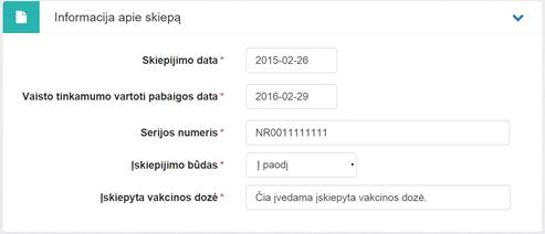Skiepijimo data – lauke įvedama ar pasirenkama iš