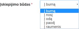 Įskiepijimo būdas – lauke pasirenkama viena reikšmė iš Įskiepijimo