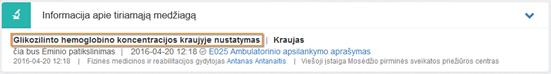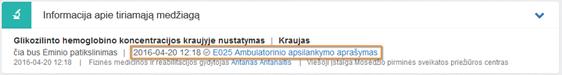 Tyrimo pavadinimas – rodoma informacija iš E025 dokumente