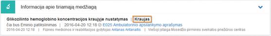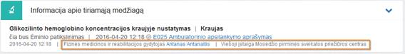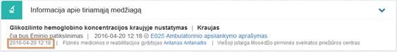 Bloke matoma laboratorinio tyrimo skyrimo, pagal kurį kuriamas siuntimas, informacija (neredaguojama):