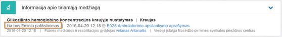 Ėminio pavadinimas – rodoma informacija iš E025 dokumente