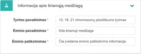 užpildyto skyrimo, lauko Tyrimo pavadinimas.