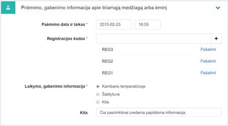 Registracijos kodas – įvedamas ėminio(-ių) registracijos