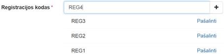 kodas(-ai). Registracijos kodas įvedamas tik tada, kai užpildžius lauką