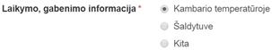 reikšmę iš: Kambario temperatūroje, Šaldytuve arba Kita.