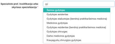 Profesijų klasifikatoriaus sąraše rodomos šios profesijų grupės: 221 Gydytojai, 222 Slaugos ir akušerijos specialistai ir 226 Kiti sveikatos specialistai. Lauką užpildyti privaloma.