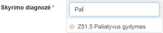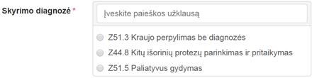 Susijusi diagnozė – lauke privaloma pasirinkti vieną