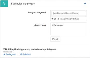 Aprašymas – pasirinkus diagnozę lauke Susijusi diagnozė