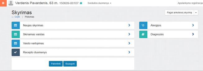 pagrindu kurs naują, patikslina siūlomus skyrimo ir recepto (jei išduodamas)