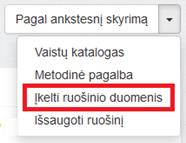 2.1. Išskleidžiamame meniu pasirinkti Įkelti ruošinio duomenis.