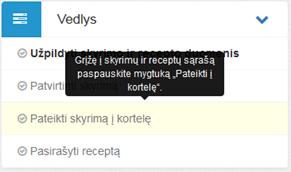 specialistas mato kuriame proceso žingsnyje yra, užvedus pele ant žingsnio