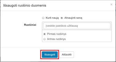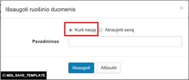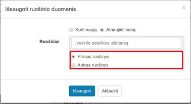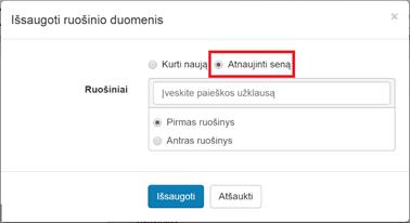 3.2. Pasirinkti, ar bus kuriamas naujas ruošinys (Kurti naują), ar pakeičiamas anksčiau išsaugotas (Atnaujinti seną) ruošinys: