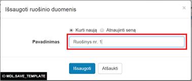Išsaugoti juodraštį. Paspaudus mygtuką